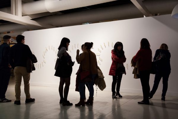 Graphite on paper, carton and wall. Carton, steel, studio key and 128 steel nails of 1.8 x 25 mm.